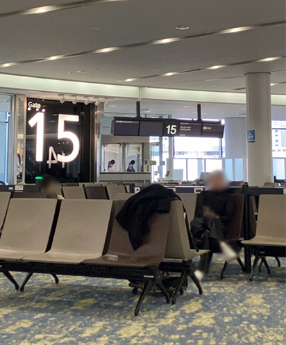 電光掲示板や搭乗券に、搭乗口番号が書いてあるので、探して15番
