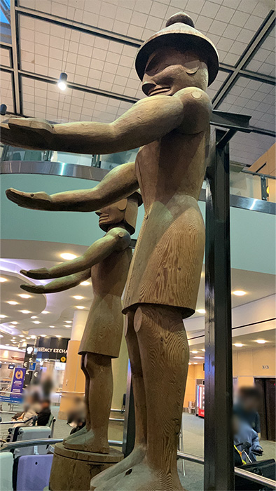 パスポートは手元に持っておいてと渡されたので、パスポートと身軽な自分でゲートをくぐり→ボディチェックさわさわ→パスポート顔チェック→通過